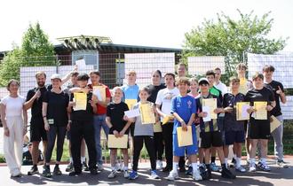 Auch Schulleiterin Marion Braun und Bürgermeister Jens Fröhlich, die selbst am Sponsorenlauf teilnahmen, lobten den Enthusiasmus der Schülerinnen und Schüler und zeigten sich sehr erfreut über den Erfolg des Sponsorenlaufs.