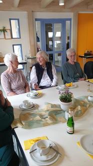 Wie immer war der Tisch feierlich gedeckt und dekoriert. Heute hatten wir dank der gespendeten Geburtstagskuchen die große Auswahl an Kuchen und Torten. Auch ein alkoholfreier Sekt wurde gespendet. So konnten wir einen angenehmen Nachmittag bei Kaffe, Tee und Kuchen genüsslich mit interessanten Gesprächen in froher Runde verleben.