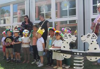 Mit Blumenkränzchen und als Tiere verkleidet stimmten wir den Frühling mit einem Lied ein und zauberten damit allen ein Lächeln ins Gesicht.