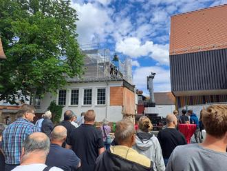 Bei bestem Wetter durften sich die zahlreichen, zu diesem Anlass erschienenen, Bürgerinnen und Bürger über den aktuellen Bauzustand der künftigen Begegnungsstätte bei einer Begehung im Rohbau überzeugen.