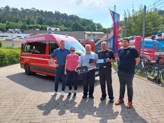v.l.n.r.: Jens Fröhlich (Autohaus Treffpunkt Thierolf), Bürgermeisterin Deirdre Heckler, Gert Hartmann (Stadtbrandinspektor), Thorsten Weber (Wehrführer Wald-Amorbach), Max Kern (1. Vorsitzender Freiwillige Feuerwehr Wald-Amorbach e.V.)