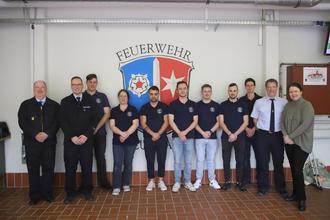 Von Gert Hartmann und Deirdre Heckler wird Sebastian Lautenschläger rückwirkend zum 17.02.2024 zum Hauptfeuerwehrmann ernannt. Silas Lautenschläger wird von dem Vereinsvorsitzenden Michael Schwarz für 10 Jahre aktive Mitgliedschaft im Verein geehrt.