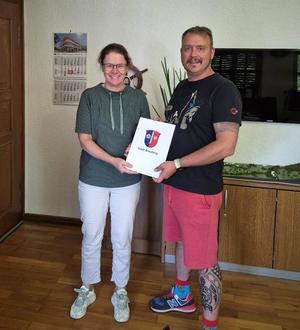 Bürgermeisterin Deirdre Heckler und der neue Stellvertretende Stadtbrandinspektor Paul Weber.