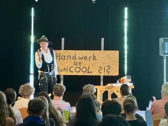 Was ist der Sinn des Lebens, sei Richard Beltz in jungen Jahren gefragt worden. Und er spürte dem nach. Sein Fazit: Authentizität. Den eigenen Weg gehen. Während er eine Brücke (die sogenannte Leonardo-Brücke) aufbaut, die ohne Kleber, Nägel oder Schrauben auskommt und stabil begangen werden kann, berichtet er von seinem eigenen Leben: wie er auf einem Bauernhof groß wurde, auf dem jeder den Beruf erlernte, den der Vater ausübte. Wie er nach Abschlüssen in der Realschule und auf der Fachoberschule schließlich das Fachabitur Technik absolvierte und lange Zeit nicht wusste, was er „werden“ wollte. Jeden Tag sei der Druck gewachsen, von außen, aber auch von innen – was will ich werden, wer will ich sein, habe er sich immer öfter gefragt. Der Zivildienst, den es zu seiner Zeit noch gab, half, diese Zeit noch immer ohne eigene Suche zu verbringen. Dann begann er, auf einer Jugendherberge mit Reitstall zu arbeiten, entschied sich, zwei Jahre im Ausland zu arbeiten: Frankreich, Spanien, Marokko. Schließlich, nach sechs Monaten Praktikum in einem Architekturbüro (das er nach eigenen Aussagen schon viel früher hätte machen sollen), stand fest: er wollte Architektur studieren. Doch erst nach seinem Studium merkte er, dass ihm dieser Beruf nicht abwechslungsreich, nicht erfüllend genug war. So begann er eine Lehre als Zimmerer, musste sich als „Studierter“ im Handwerk erst bewähren. Inzwischen hat er seit ca. 40 Jahren eine eigene Zimmerei. Was macht für ihn den Beruf des Handwerkers so erstrebenswert? Er kenne keinen Handwerker mit Burnout, sagt er. Man werde gebraucht, könne „im Flow“ arbeiten, sehe das Ergebnis der Arbeit. Man könne, und da ist sie wieder, die Sinnfrage, „authentisch leben“. Der Beruf des Handwerkers sei zukunftsträchtig, man werde immer gebraucht, Monotonie komme nie auf. Im Anschluss an seine Aufführung konnten die Schülerinnen und Schüler eigene Fragen stellen. Was verdient man in der Ausbildung? Was verdient ein Zimmerer? Was ist „die Walz“? Frau Sophie Monnheimer und ein ehemaliger Schüler des Gymnasiums Michelstadt, der gerade seine Lehre beendet und von seiner Zeit in Australien erzählt, geben abschließend noch allgemeine Informationen über das Handwerk und die Handwerkerberufe. Eine gelungene und informative Aufführung kurz vor den Sommerferien!