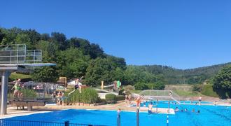 Bei den heißen Temperaturen muss man einen kühlen Kopf bewahren - das dachten sich auch die Klassenlehrer/innen der 5Kb, 5Kc, 5Kd und 5Gb und wanderten gemeinsam mit den 84 Kindern am 25. Juni 2025 zum Freibad Sandbach. Bei 25 Grad schon um 8:30Uhr war das für alle zunächst ein ziemlich anstrengender und schweißtreibender Weg, aber zum Glück wartete schon das erfrischende Wasser, das wir nach 50 Minuten Fußweg erreichten. Mit Sprüngen (auch vom 3m-Turm), Rutschen, Schwimmen und Planschen verbrachten wir einen kurzweiligen, entspannten Vormittag im Freibad. So vergeht ein Schultag wie im Flug. Für alle steht fest, dass wir das auf jeden Fall wiederholen werden.