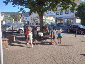 Die Schüler der Grundschule Sandbach beim Säubern des Marktplatzes.