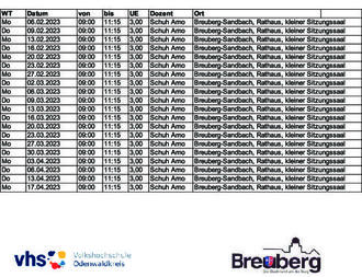 | Beginn: | Mo, 06.02.2023 09.00 Uhr, 20 Abende |