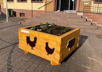 Neu aufgestellt wurde einer von fünf Pflanzkästen, die im Rahmen des 50 Jahre Stadtjubiläum Breuberg von der Georg-Ackermann-Schule angefertigt werden. Die Fertigstellung wurde mit ins Ausbildungsprojekt aufgenommen und der Kasten bei der Abschlussveranstaltung mit einer 50 bepflanzt. Der in die Jahre gekommene alte Pflanzkasten vor dem Rathaus im ST Sandbach wurde von Mitarbeitern des Bauhofes entfernt und durch den neuen Pflanzkasten ersetzt. Unterstützer bei der Bepflanzung war die Firma Löwer.