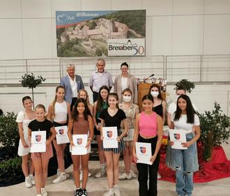 Die Stadtverordneten der Stadt Breuberg nahmen ihre letzte Sitzung auch zum Anlass, um die erfolgreichen Sportlerinnen der SG Sandbach zu ehren. Wie bereits in den vergangenen Jahren glänzten die jungen Damen auch 2020/21 mit großen Erfolgen in der Sparte Gymnastik. Sie erzielten im Einzel- sowie Mannschaftswettbewerb zahlreiche Hessenmeister-Titel. Trainiert werden die erfolgreichen Sportlerinnen von Katharina Basel.