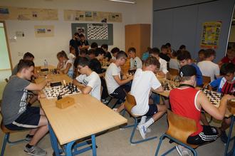 Traditionell einen Tag vor Beginn der Sommerferien fand die Schulschachmeisterschaft der Ernst-Göbel-Schule in Höchst statt. Dass Schach in der von Medien geprägten Zeit etwas ganz Anderes ist, wurde den zahlreichen Zuschauern schnell bewusst: Hoch konzentriert und schweigend saßen die 54 Teilnehmer an ihren Brettern und bewegten die hölzernen Figuren statt der Tasten auf den Handys. Vielleicht ist es gerade diese Andersartigkeit, die bis heute die Menschen an dem königlichen Spiel fasziniert. Die Vorteile in Bezug auf logischem Denken, räumlicher Vorstellungskraft und hoher Konzentrationsfähigkeit erweisen sich gerade auch im schulischen Alltag als sehr wertvoll, weshalb die Ernst-Göbel-Schule seit Jahren eine gut besuchte Schach AG unter Leitung von Oberstudienrat Thomas Raupach anbietet.