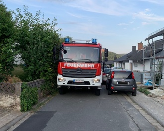 Erfreulicherweise kam das Löschfahrzeug in den meisten Straßen ungehindert an den parkenden Fahrzeugen vorbei. Die Breuberger Bürger nehmen also größtenteils Rücksicht aufeinander und wissen um die Wichtigkeit der Einhaltung der Hilfsfristen. An einigen Stellen besteht allerdings noch Nachbesserungsbedarf, wie man auf den folgenden beiden Bildern unschwer erkennen kann: