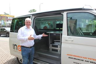 Von Anfang an ging die InA gGmbH in der Maßnahme „Perspektive“ einen neuen Weg und kommt, nach dem Motto „Wenn Sie nicht zu uns kommen können, so können wir zu Ihnen kommen“, auf die Teilnehmenden zu. Dafür wurde im November 2021 ein vollwertiges und mobiles Büro in Form eines umgebauten Kleinbusses („InA-Van“) angeschafft, mit dem ein Maßnahmencoach die Teilnehmenden besuchen kann.