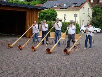 Mit Alphornmusik begrüßten die Bläserinnen und Bläser der Gruppe Alphorn Pur die Besucherinnen und Besucher des diesjährigen Kisseltaggottesdienstes in Wald-Amorbach. Unter dem Dach der Feuerwehrhalle führte Pfarrerin Christina Meyer durch den Gottesdienst – und das Wetter hielt! Sie zog Verbindungen von dem einschneidenden Erlebnis der Wald-Amorbacher 1702, das dazu führte, noch heute den Kisseltag zu feiern, mit den Erlebnissen des Propheten Elia, der in einer Krisensituation seines Lebens zwei Gottesbegegnungen am Gottesberg Horeb hatte. Nach einem Sturm, Erdbeben und Feuer erscheint Gott in einem sanften Flüstern, hört Elia zu und weist ihm einen Weg, wie er weitermachen kann. In beiden Situationen spürten die Menschen: „Ohne Gott kommen wir da nicht durch“. So ergeht es uns heute auch im Blick darauf, dass am 1. August schon alle Ressourcen, die unsere Erde in einem Jahr für uns bereithält, aufgebraucht worden sind. Pfarrerin Christina Meyer ermunterte dazu, sich auch jetzt auf Gott zu besinnen und mit seiner Hilfe die Zukunft zu gestalten.