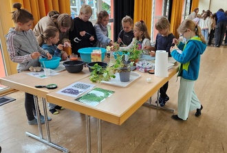 Spaß machte es auch den Kindern, mit gesammelten und getrockneten Blütenblättern ihre eigenen duftenden Seifen aus Glycerin herzustellen.