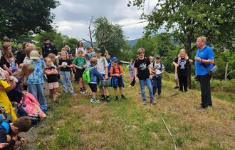 Gemeinsam mit Ranger Bernd Dörwald vom Geo-Naturpark erforschten die Kinder mithilfe von Becherlupen kleine Lebewesen im Wasser, auf Bäumen und Wiesen. Die Natur-Rallye in Gruppen machte den Kindern auch viel Spaß. Sie mussten verschiedene Aufgaben lösen, Pflanzen und Bäume suchen, verschiedene Beere, Blätter sowie Blüten sammeln. Zum Schluss wurde die Rallye gemeinsam ausgewertet und die Gruppen bekamen kleine Belohnungen. Großen Spaß hatten die Kinder auch bei den verschiedenen Natur- und Wissensspielen: „Welches Tier bin ich?“ oder beim Gruppenspiel “Lachgasse“.