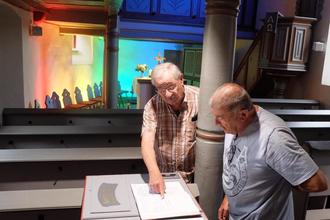 Dieter Weber (links) und Hermann Trenschel blättern gerne ab und an im Gästebuch.