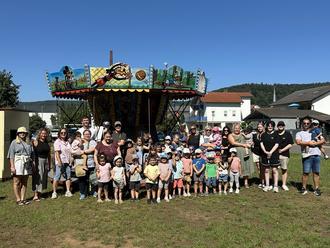 Am Montag, dem 11.08.2025 besuchten die Kinder, Erzieher und Erzieherinnen aus den beiden Neustädter Einrichtungen die Kerb in Neustadt. Bei strahlendem Sonnenschein liefen wir an der Mümling entlang Richtung Sportplatz.
