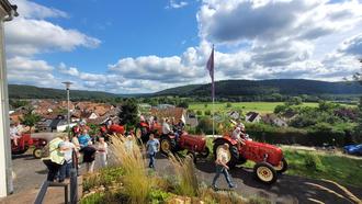 Im diesjährigen Kerbgottesdienst, der auch gleichzeitig das 70-jährige Jubiläum der Kirche bedeutet, suchte Pfarrer Frank Couard nach Gottesdienstbesucherinnen und -besuchern die Jahrgang 1954 sind oder vielleicht sogar die Einweihung der Kirche miterlebt haben und die gibt es tatsächlich. Er betonte, dass die Kirche ein Gebäude ist, das jedoch durch eine aktive Gemeinde lebe, wie heute auch durch eine rege Beteiligung der Porsche-Diesel-Freunde bezeugt. Die Predigt kam aus dem Johannesevangelium, die Jesus Christus als Weg, Wahrheit und Leben beschreibt. Wege gibt es viele, vorgetragen in heiteren Anekdoten und persönlichen Erfahrungen. Wie der Sänger Xavier Naidoo zur Fußball WM 2006 sang „Dieser Weg wird kein Leichter sein“, ist das, was aber auch unsere Erfüllung sein kann. Jesus der Weg, den wir erreichen versuchen, aber auch Jesus, der stets diesen Weg mit uns geht. Auch die Porsche-Diesel-Freunde machen sich auf den Weg. Zuerst nach Wald-Amorbach und wieder zurück nach Hainstadt, da beide Stadtteile am gleichen Tag Kerb feiern. Mit lautem Tuckern machte sich eine beachtliche Flotte roter Traktoren direkt von der Kirche auf den Weg.