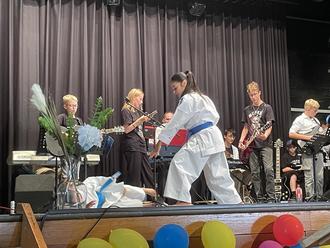 Sportliche Beiträge bei der Aufnahmefeier der 5. Klassen mit Live-Musik.