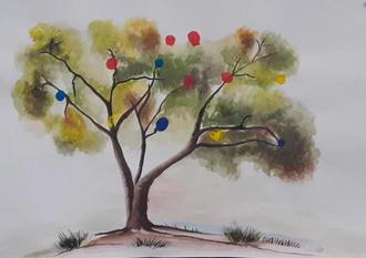 Die neuen EGSler stempelten ihre einzigartigen Fingerabdrücke auf eine von Frau Bassenauer gemalte Baumvorlage.