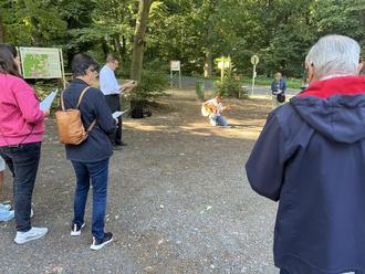 Breuberg. Baumstämme statt gotischer Säulen, Wolkenbilder anstelle von Deckenfresken und Gitarre statt Orgel: Bei einem Gottesdienst im Freien ist manches anders als in der Kirche. Und bei 'Kirche unterwegs' unterhalb der Burg Breuberg blieb die Gemeinde nicht mal an Ort und Stelle: Rund 30 Menschen bildeten zusammen für eine gute Stunde das 'Wandernde Gottesvolk' und folgten vom Parkplatz Gustavsruhe aus dem sogenannten Eselsweg, der unterhalb der Burg um dieselbe herumführt. Zwar keine Esel, doch zwei Hunde waren ebenfalls mit dabei.