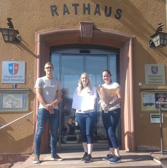Rouven Zumkeller (Abteilungsleiter), Nadja Zimmermann und Bürgermeisterin Deirdre Heckler.