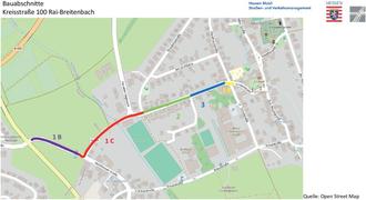 Um die Beeinträchtigungen für die Anwohner im jeweiligen Ausbaubereich möglichst zu minimieren, wurde die Maßnahme in fünf Bauabschnitte unterteilt. Aufgrund der örtlichen Gegebenheiten und der Art der umfangreichen Arbeiten muss die Straße abschnittsweise vollgesperrt werden.