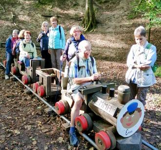 Heute, am kalendarischen Herbstanfang, haben wir ein Wanderwetter, wie man es sich schöner nicht wünschen kann. Der Ramsauer-Bus bringt uns zur Obrunnschlucht, und wir beginnen mit unserer Wanderung auf dem märchenhaften Wanderpfad. Verwunschene Mooswände bieten unserer Fantasie kreative Deutungen. Und schon verleitet die Lok Emma von Jim Knopf zum Einsteigen.