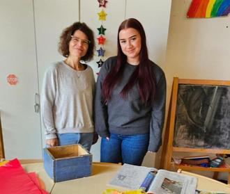 Frau Ziomek (Praxisanleiterin der Einrichtung „Zur Kinderwelt“) und Deborah Rieker