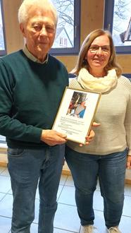 Während der anschließenden regen Unterhaltung und des gemütlichem Beisammenseins gab Norbert einen DIN A4-Bilderrahmen mit einem Foto von Erich Fertig und einigen erläuternden Zeilen in die Runde, die daran erinnern, dass es zwei Lieder über „Rawisch“ und Breuberg gibt, die Erich (Gott hab ihn selig) bei Geselligkeiten oft gesungen und damit viel Stimmung eingebracht hat. Es sind die Titel: „Wo geht’s donn do noch Rawisch“ und „Das Herz von Breuberg“. Ursel hat die verschiedenen Strophen vorgelesen, was natürlich zur allgemeinen Erheiterung beigetragen hat. Auf der Rückseite des Bildes sind die Texte dieser Lieder versteckt. Das Werk ist künftig in der Vitrine im Dorftreff zu sehen. Dazu gab es Zustimmung nicht nur von Erichs anwesender Tochter Silke, sondern auch von allen Seniorinnen und Senioren.