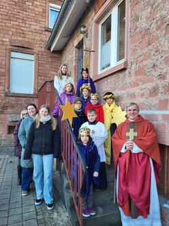 Im Bild die Sternsinger von Breuberg mit Pfarrer Josef Schachner nach dem Aussendungsgottesdienst am 2. Weihnachtsfeiertag.