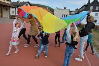 So lautete das Motto des diesjährigen ökumenischen Kindergottesdiensttages Ende September. Wir erlebten die spannende Geschichte der Sturmstillung in einem kleinen Theaterstück, das ein paar Jugendliche eingeübt hatten. Die Kinder überlegten, was Stürme in ihrem Leben sein können. Nach einem kleinen Snack wurde auf dem Schulhof gespielt und gebastelt: die Kinder bemalten kleine Kissen, bauten Schiffe aus Borke, bastelten Ocean-Drums aus Pizzakartons und bemalten Mut-mach-Steine. In ein Sturmbild klebte jeder ein kleines Boot mit seinem Namen, das uns daran erinnert, dass Jesus auch in stürmischen Zeiten an Bord unseres Lebensbootes ist. Gerne sangen wir zusammen mit Jessica am Piano die Lieder. Vielen Dank an das große Team von Ehrenamtlichen und an die Breuberger Kids, die mitgemacht haben.