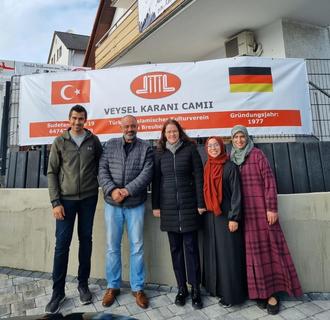v.l.n.r.: Cem Doğan (Sekretär DITIB), Cemal Polat (1. Vorsitzender DITIB), Bürgermeisterin Deirdre Heckler, Büşra Köz (Religionsbeauftragte) und Gülay Sarıkaya (2. Vorsitzende DITIB)