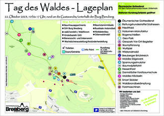 Bestaunen Sie die Holzurnen-Manufaktur, informieren Sie sich über den Friedwald, erhalten Sie einen Einblick in die Welt der Bienen, erleben Sie Rettungshunde bei der Arbeit oder seien Sie bei einer Absturzsicherung der Feuerwehr live mit dabei. Ebenso können Sie Baumstamm-Mikado in einer außergewöhnlichen Dimension spielen oder bei einem Holzwurfspiel Ihr Geschick versuchen. Ein Spannungssimulator zeigt die Biegbarkeit von Baumstämmen, das Mobile Sägewerk gibt Einblick in seine Arbeit, die Darmstädter Forstbaumschule zeigt die Vielfalt der Waldpflanzen und die Mobile Waldbauernschule erläutert anschaulich die Arbeit im Wald mit ihren Gefahren. Der Smart Skidder wird in Aktion sein und sein erstaunliches Können im Hang zeigen. Hessen-Forst bietet Kindern verschiedene Aktionen zum Mitmachen und Informationen rund um den Wald an. Am Stand des Breuberger Waldforums erläutert die Arbeitsgruppe Wald die weltweite Bedeutung der Wälder und deren Bezug zu den 17 Zielen für Nachhaltige Entwicklung beispielhaft an der Situation unseres Waldes mit Spielen, SDG-Glücksrad und vielen Informationen. Forstmulchen in Aktion mit einem besonderen Gerät können Sie erleben, Achtsamkeitsspaziergänge genießen, das Wildlandmobil mit Waldexponaten und rustikale Holzmöbel und deren Herstellung bestaunen. Sehen Sie Forstmaschinen aus nächster Nähe oder pflanzen Sie gemeinsam mit den Kindern einen Baum im Wald.