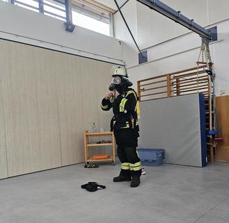 Vom 22.09. bis 02.10.2025 hatten wir unsere alljährlichen Brandschutzwochen und alles drehte sich um das Thema Feuer und Rauch. Gemeinsam wurde besprochen, was Feuer alles kann: es kann nützlich und gefährlich zugleich sein. Durch Ausflüge, Bilder, Experimente, Geschichten, Erzählungen und Bücher lernten die Kinder, was die Aufgaben der Feuerwehr sind und wie man sich in einem Brandfall verhält. Wir haben uns mit dem Thema Rauchmelder auseinandergesetzt und die Nummer der Feuerwehr eingeübt. Auch entstand Allerlei Kreatives zum Thema Feuer und Feuerwehr. Wir hatten in dieser Zeit dreimal Räumungsübungen, um die Kinder auf einen Ernstfall, der hoffentlich nie eintreten wird, vorzubereiten. Damit die Kinder keine Angst vor einem Feuerwehrmann haben, besuchte uns Feuerwehrmann Lucas und die Kinder konnten zusehen, wie er seine Schutzkleidung bis hin zum Atemschutzgerät anzieht und er beim Sprechen dann klingt. Die Schulkinder durften sich sogar das Feuerwehrhaus mit Turm, Feuerwehrautos, den Werkstätten, den Umkleideräumen und allem was noch dazugehört von Katha und Heiko zeigen lassen.