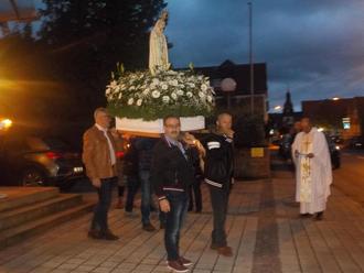Die Gottesmutter Maria wurde am Samstagabend, dem 15. Oktober 2022, in einer Lichterprozession zum Marienhaus getragen.