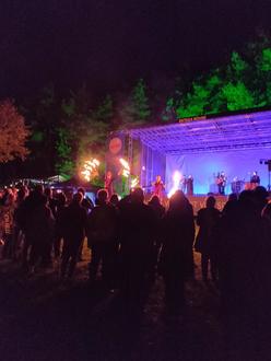 Bereits im Vorverkauf wurden 350 Eintrittskarten im Bürgerbüro und online verkauft. Das Wetter machte es bis zuletzt spannend, spielte jedoch letztendlich mit. Nachdem die letzten Sonnenstrahlen hinter dem Breuberger Wald verschwunden waren, begleiteten Stelzenläufer die zahlreichen Besucherinnen und Besucher über den Zeltplatz. Mit Einbruch der Dunkelheit begann um 19.30 Uhr die Show von artArtistica und Dhalia´s Lane.