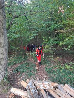 Rettungshundestaffel Südhessen bei der Rettungsübung im Wald.