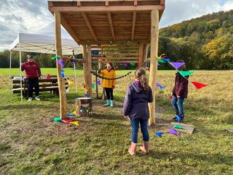 In der vergangenen Woche durfte ich bei der Einweihung des ersten Klangobjektes, welches im Rahmen des Projekts „Breuberg klingt“ entstanden ist, dabei sein. Fünf Kinder und Jugendliche haben in den Herbstferien mit Jugendpflegerin Sibel Cakir und Petra Sommer vom Kulturforum Breuberg ein Xylophon gebaut, welches Sie am Rad- und Spazierweg zwischen Breuberg-Hainstadt und Mömlingen finden können. Ein besonderer Dank geht an dieser Stelle an Andreas Brand von der Firma Gartenbau Brand, der mit seinem Team trotz strömenden Regens das Projekt an allen Tagen tatkräftig unterstützt hat!