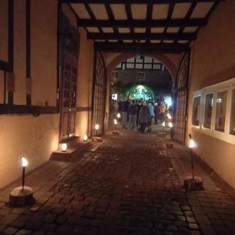 Rund 170 Besucherinnen und Besucher waren der Einladung zur Hubertusmesse gefolgt. Zahlreiche Gäste kamen im Anschluss an den Gottesdienst noch in den Rathausinnenhof und ließen den Abend bei Getränken, Snacks und Feuerschein gemütlich ausklingen.