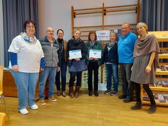 v.l.n.r.: Petra Ziebler (NABU Breuberg e.V.), Bernhard Saul (NABU Breuberg e.V.), Bürgermeisterin Deirdre Heckler, Frauke Scholz (Kindergarten Auenland), Birgit Wölfelschneider (Diakoniestation Breuberg), Sabine Sauerwein (Diakoniestation Breuberg), Wolfgang Ziebler (NABU Breuberg e.V) und Kathrin Spiegel (NABU Breuberg e.V)