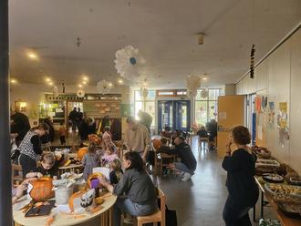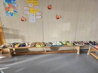 Dabei entstanden wie immer die tollsten Kürbisse, denn die Eltern und ihre Kinder ließen dabei ihrer Fantasie freien Lauf und am Ende hatte jede Familie einen (oder auch mehrere) gruselige Kürbisse zum mit nach Hause nehmen. Auch beim gemeinsamen Büfett, dass die Eltern mitgebracht hatten, war viel Kreativität im Spiel: es gab Halloweenmuffins, leckere Kuchen und auch Herzhaftes war dabei. Danke an Alle für den schönen, gelungenen Nachmittag.