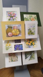 Des Weiteren hat uns, inspiriert durch diese Versteigerung, Ursula Schlund aus dem ST Sandbach ihre selbstgemalten Aquarelle zur Verfügung gestellt. Die wunderschön gestalteten Bilder sind im Wartebereich des Rathauses (Eingang gleich rechts) zu sehen. Die Kinderkrippe Mäusebande e.V. erhält hier ebenfalls den gesamten Erlös aus dem Verkauf. Auch hier finden Sie alle Informationen im vorgenannten Pressebericht.
