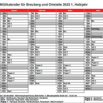 Abfallkalender für das Jahr 2023