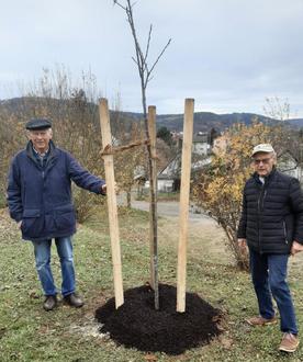 Norbert Schwinn (links) und Werner Schwinn (rechts) bei der Baumpflanzung.