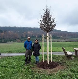 Tobias und Katharina Hotz mit dem gespendeten Baum.