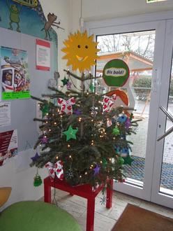 Dieser schöne kleine Tannenbaum schmückt wieder unseren Eingangsbereich und verzaubert jeden Morgen unseren Kindergarten mit weihnachtlicher Atmosphäre.