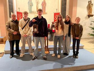 Jugendliche der Katholischen Landjugendbewegung Breuberg holten das Friedenslicht im Mainzer Dom für den Aussendungsgottesdienst in der Pfarrkirche in Neustadt. Die Aussendungsfeier stand unter dem Motto: „Ein Funke Mut“.