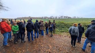 Rund 45 Bürgerinnen und Bürger folgten der Einladung des Umwelt- und Landwirtschaftsausschusses, vor Ort das für eine Freiflächen-PV -Anlage in Frage kommende Areal oberhalb von Wald-Amorbach zu besichtigen und sich über den aktuellen Sachstand zu informieren.
