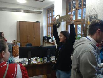 Am Weiberfastnachts-Donnerstag (08.02.) konnte ich leider krankheitsbedingt nicht im Rathaus sein, aber die Erste Stadträtin Ute Kowarschik hat all ihr Können eingesetzt um die Stürmung des Rathauses zu verhindern. Trotz aller Gegenwehr haben es die 11er doch gemeinsam mit der Sandbacher Garde, dem Karnevalverein Neustadt sowie einer Abordnung des CCH aus Höchst geschafft, das Rathaus zu stürmen und den gut versteckten Rathausschlüssel zu entwenden.